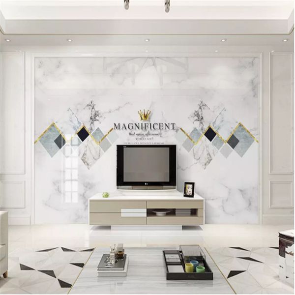 Modern Simple Jazz White Marble Texture Geometric Square Background Wall Papers Home Decor 3d Mural Wallpapers For Living Room Bedroom Walls Pictures